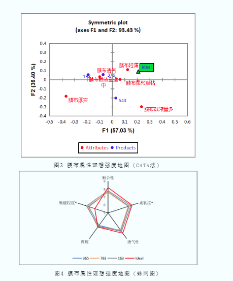 2.測試:將測試品使用順序進(jìn)行隨機(jī),消除使用順序?qū)υu分帶來的影響,除測試品的膚感、喜好度等方面的數(shù)據(jù)收集,并探究面膜的膜布、精華液的消費(fèi)者理想強(qiáng)度