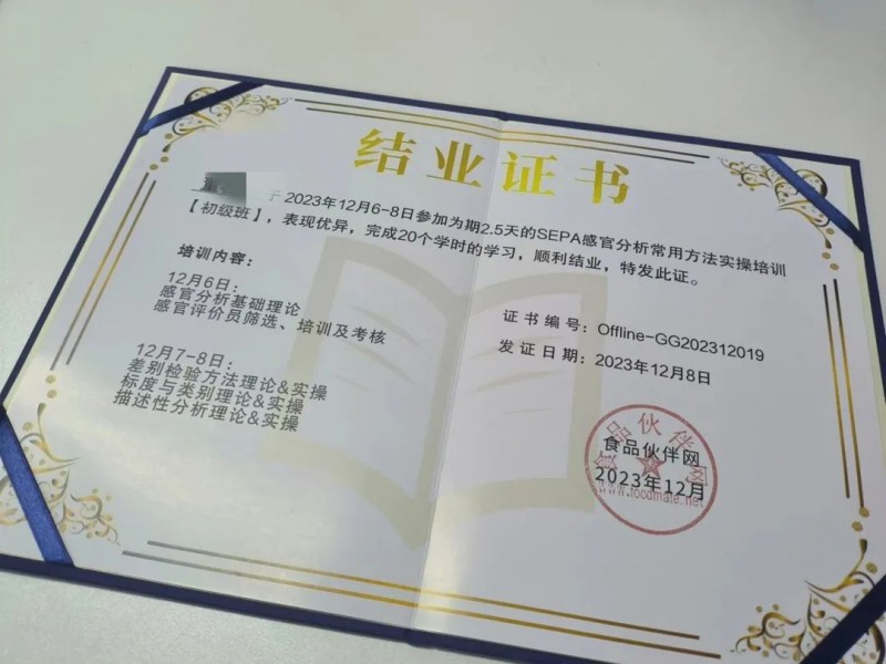 SEPA感官分析常用方法實(shí)操培訓(xùn)(初級(jí)班)成功舉行!學(xué)員們完成培訓(xùn)并圓滿結(jié)業(yè)。專業(yè)的事情需要專業(yè)的人來做!希望學(xué)員們帶著此次培訓(xùn)班的“感官知識(shí)收獲”,能夠順利開展工作!我們的培訓(xùn)工作在繼續(xù)進(jìn)行,希望在后續(xù)的提升學(xué)習(xí)中能與大家再次見面,一起期待!
