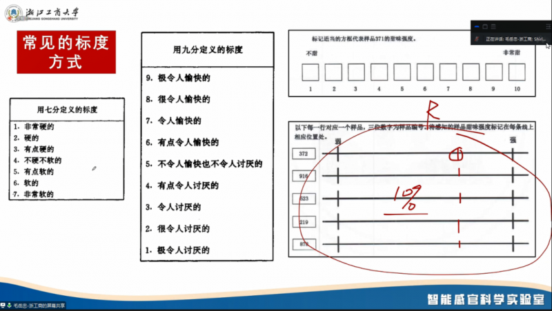 下午,來自浙江工商大學(xué) 毛岳忠老師,為學(xué)員帶來兩大實操培訓(xùn),分別是:實操培訓(xùn)1:感官評價員篩選基礎(chǔ)知識及差別檢驗實驗設(shè)計及數(shù)據(jù)分析;實操培訓(xùn)2:標度與類別實驗設(shè)計及數(shù)據(jù)分析。