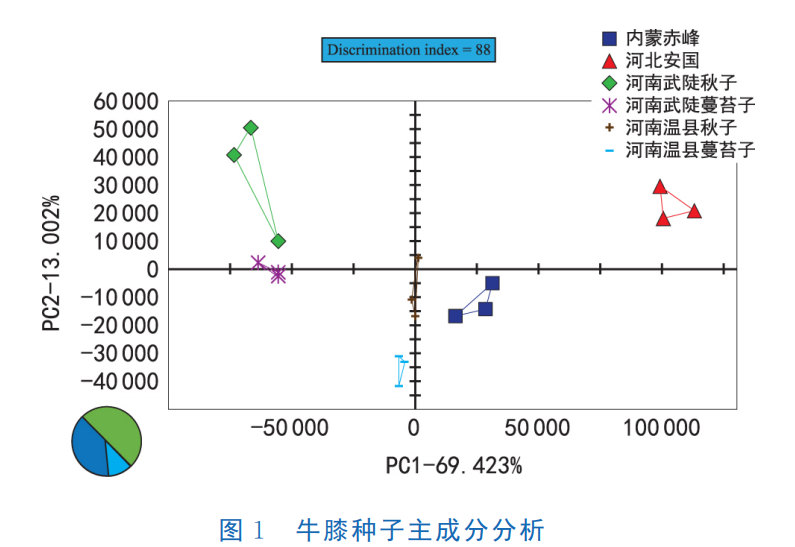 超快速氣相色譜電子鼻已廣泛應(yīng)用于農(nóng)業(yè)、醫(yī)療等領(lǐng)域,在實(shí)際生產(chǎn)中電子鼻可用于建立產(chǎn)品質(zhì)量控制模型,實(shí)現(xiàn)對產(chǎn)品品質(zhì)的快速有效監(jiān)控,近年來逐漸應(yīng)用于中藥材的質(zhì)量評價(jià),在中藥行業(yè)中有廣泛的應(yīng)用前景。本研究通過電子鼻對不同來源牛膝種子的氣味進(jìn)行檢驗(yàn)和區(qū)分,以期通過該技術(shù)客觀描述牛膝種子揮發(fā)性化合物的差異,為其鑒別研究提供一定參考。