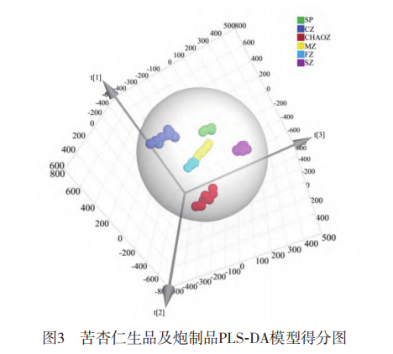 鼻(FGC E-Nose)檢測苦杏仁及炮制品的揮發(fā)性成分,運(yùn)用多種化學(xué)計(jì)量學(xué)方法進(jìn)行區(qū)分鑒別,明確不同炮制品揮發(fā)性成分的差異。