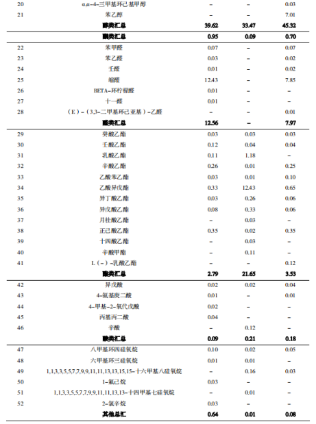 來源:感官科學(xué)與評定,轉(zhuǎn)載請注明來源。 參考文獻(xiàn):馮翰杰,李濤,楊梅等.不同發(fā)酵方式對柿子酒中揮發(fā)性香氣成分的影響研究[J].天津農(nóng)學(xué)院學(xué)報,2022,29(03):56-65.