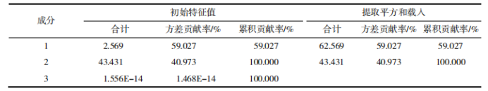 圖5 不同發(fā)酵方式的柿子酒感官評價雷達(dá)圖 主成分分析 用SPSS軟件對表3中的數(shù)據(jù)進(jìn)行主成分分析,得到兩個主成分,如表4所示。其中第一主成分貢獻(xiàn)率為59.027%、第二主成分貢獻(xiàn)率為40.973%。 表4 主成分分析中解釋的總方差
