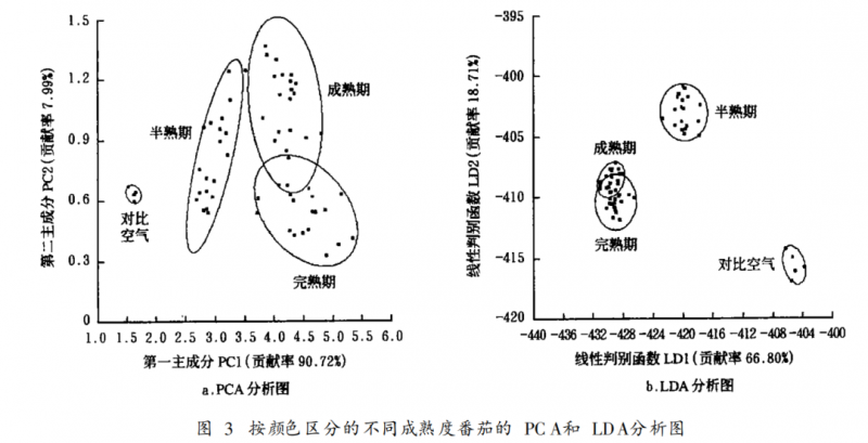 不同成熟度番茄的電子鼻檢測分析