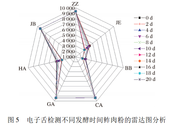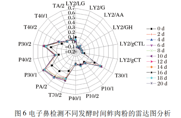 電子鼻對不同發(fā)酵時間鲊肉粉的雷達圖分析