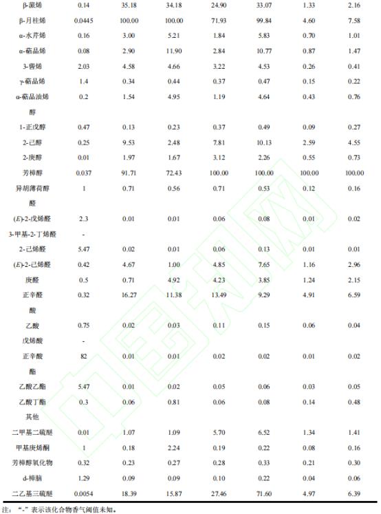 表 4 甜橙精油中揮發(fā)性化合物的 ROAV 值