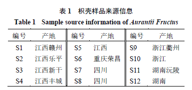 12批枳殼樣品購(gòu)于甘肅中天藥業(yè)有限責(zé)任公司,具體樣品批次信息見表1,經(jīng)南京中醫(yī)藥大學(xué)藥學(xué)院陳建偉教授鑒定,確定樣品來源為蕓香科植物酸橙C. aurantium L.的干燥未成熟果實(shí)。