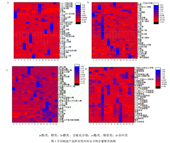 2.市售蠔油產(chǎn)品揮發(fā)性風(fēng)味化合物的差異