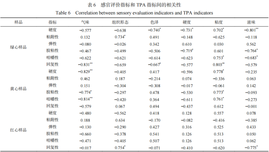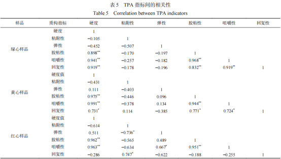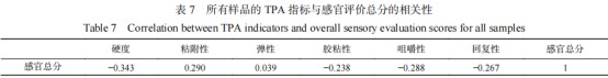 05 感官評價指標與TPA指標間的相關(guān)性