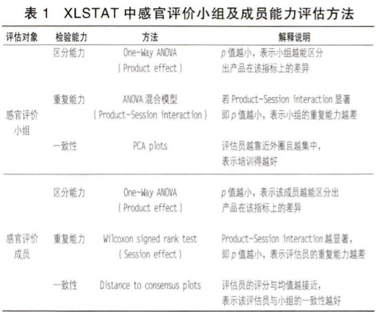 1999年,Guinard等在評價(jià)酒質(zhì)量實(shí)驗(yàn)中,用方差分析評估了啤酒評價(jià)小組是否具有一致性和重復(fù)性。Calvino等在 2005 年發(fā)表的文章中利用主成分分析法(principalcomponentanalysis)不僅分析了產(chǎn)品的感官分布,還評估了評價(jià)員個(gè)人表現(xiàn),并判斷了評價(jià)小組及成員在再培訓(xùn)上的側(cè)重點(diǎn)。徐淑臻等采用 PanelCheck軟件,通過折線圖、crelation plt和 MSEp1ot 等多種可視化圖型,探討評價(jià)小組個(gè)體的評估能力,結(jié)果表明,不同評價(jià)員對乳酸菌飲料的特定方向?qū)傩员憩F(xiàn)和重復(fù)性都有不同。