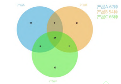 圖3 3個不同市售霉莧菜梗揮發(fā)性成分韋恩圖