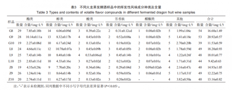 03不同產(chǎn)地和采收時間火龍果發(fā)酵酒的揮發(fā)性風(fēng)味成分分析